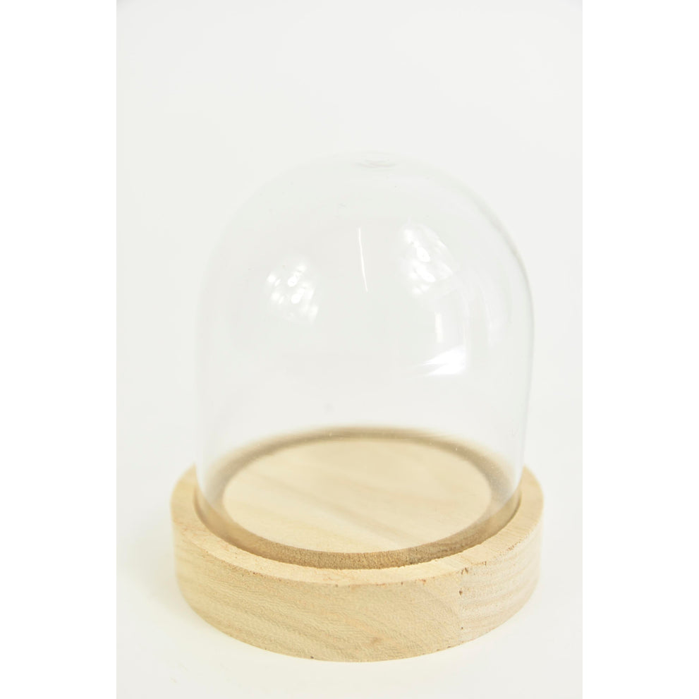 Glasglocke mit Holzboden Ø10 Höhe 15 cm