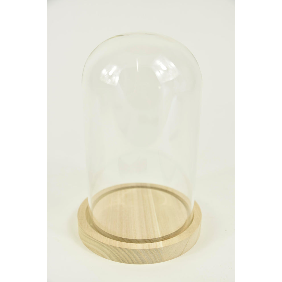 Glockenglas mit Holzsockel Ø14 Höhe 21 cm