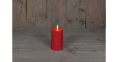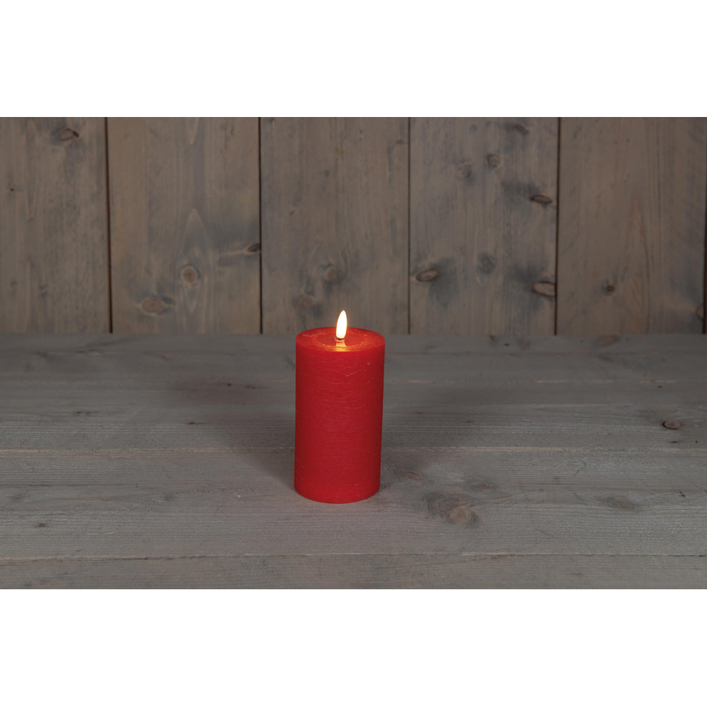 STUMPFE KERZE B.O.T. ROT WACHS RUSTIKAL 3D DOCHT 7,5X12,5CM 3XAAA / TIMER