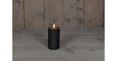 STUMPFE KERZE B.O.T. SCHWARZES WACHS RUSTIKAL 3D DOCHT 7,5X12,5CM 3XAAA / TIMER