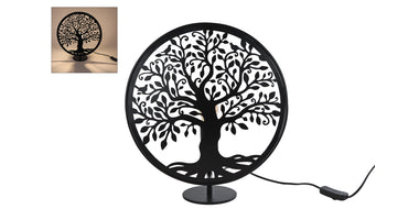 Tischlampe "Lebensbaum" aus schwarzem Metall, rund, 34x13x37cm