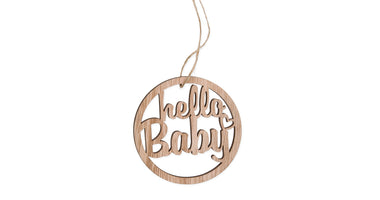 Beutel mit 8 Holzanhängern ''hallo baby'' natur 9cm