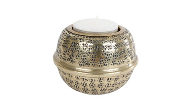 Teelicht "Rik" 2x M schwarz/gold Metall/Glas 16.5x6.5x7cm