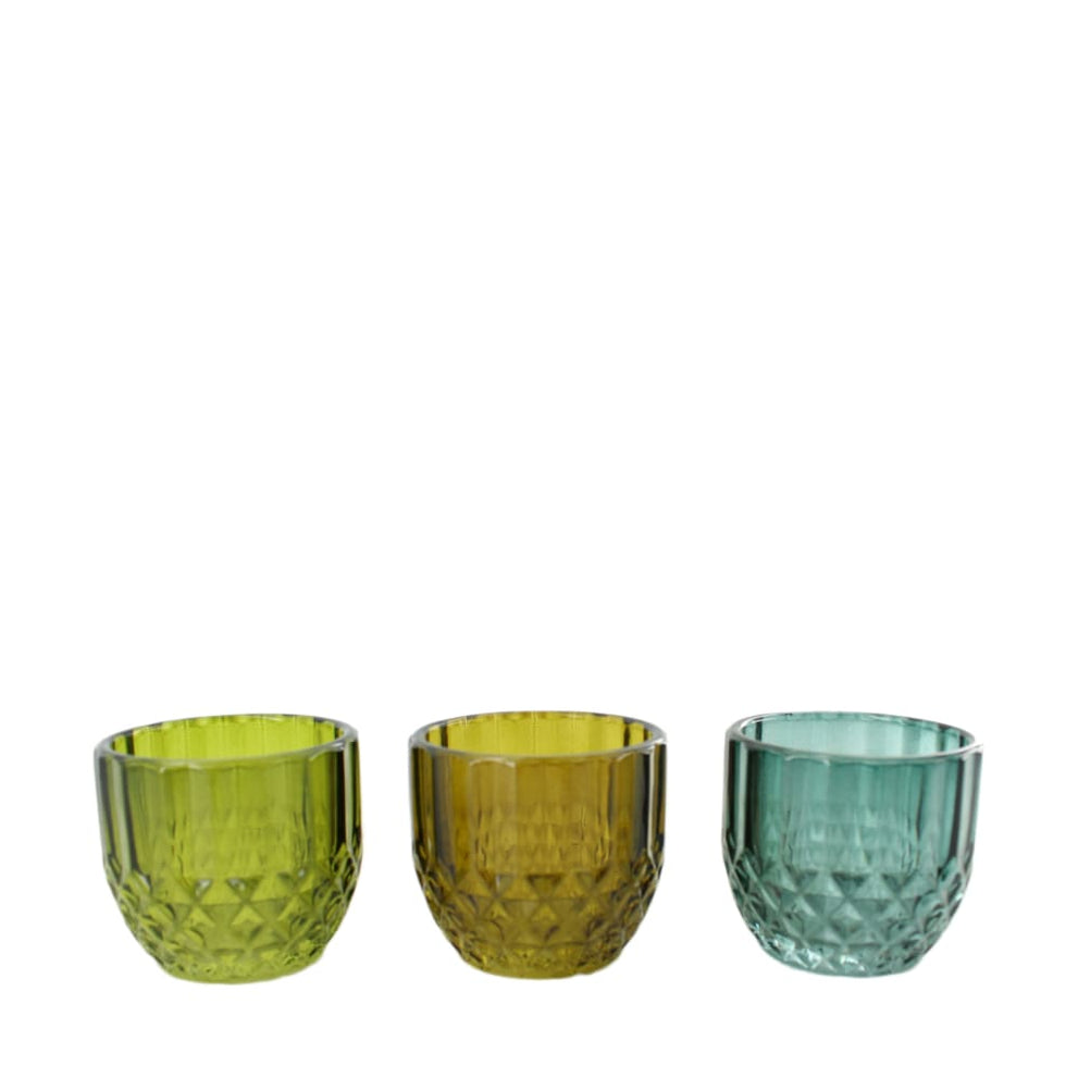 Teelichthalter Glas 6.5x6.5x5.8cm 3 sortiert Mixed grün