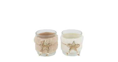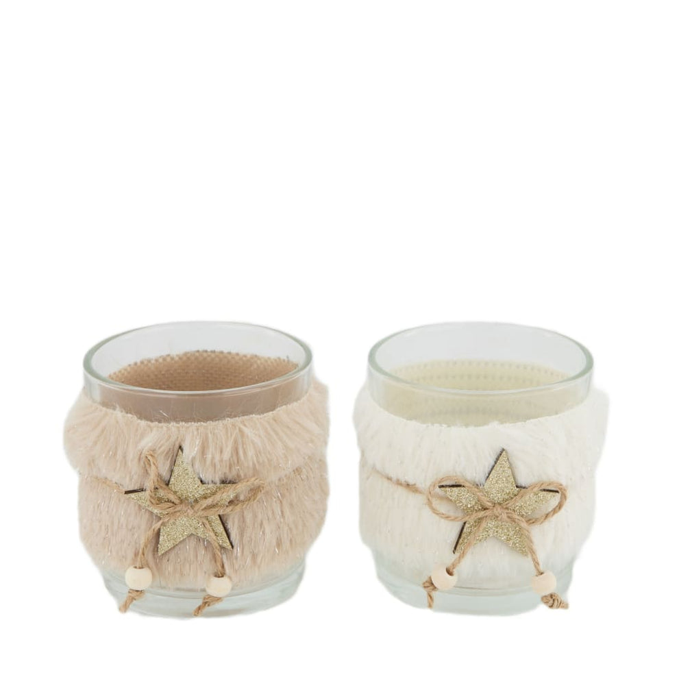 Teelichthalter Glas 7.3x7.3x8cm 2 Mix Creme/Braun