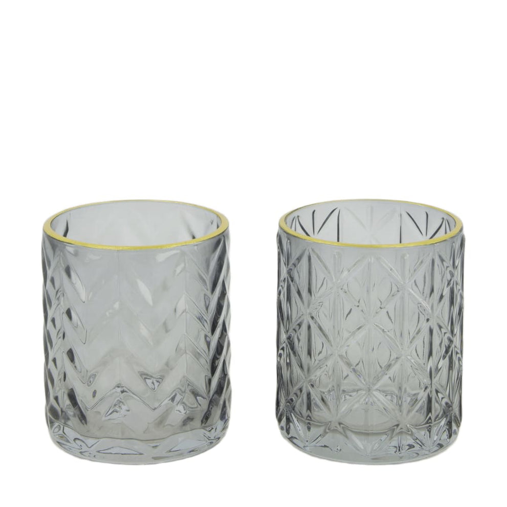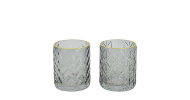 Teelichthalter Glas 8.5x8.5x10cm2 Grau Mix