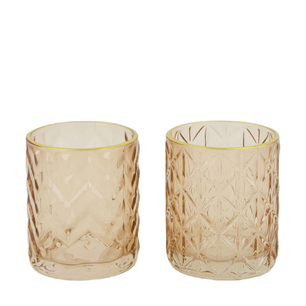 Teelichthalter Glas 8.5x8.5x10cm 2 Hellbraun Mix