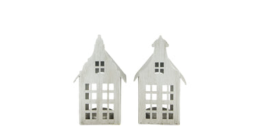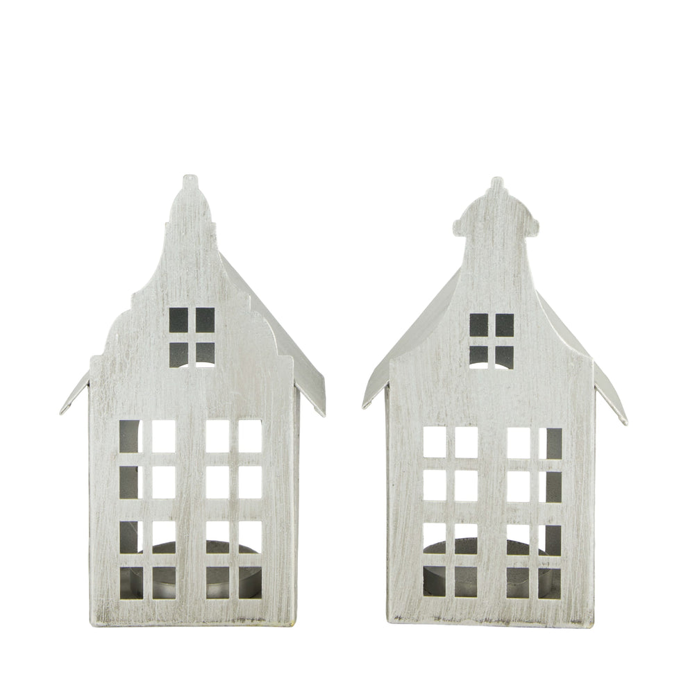 Tealight holder house metal 10x7x18cm Mixed Silver