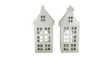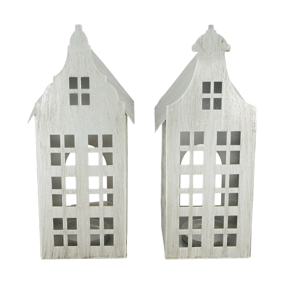 Tealight holder house metal 12x9x28cm Mixed Silver