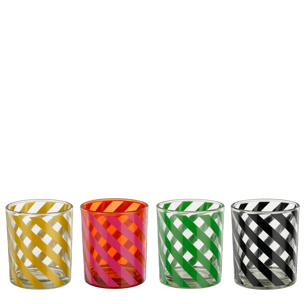 Teelichthalter streifen zw fuch gro ocker 4 ass. - h8xd7cm