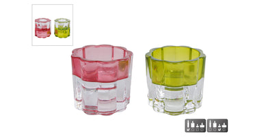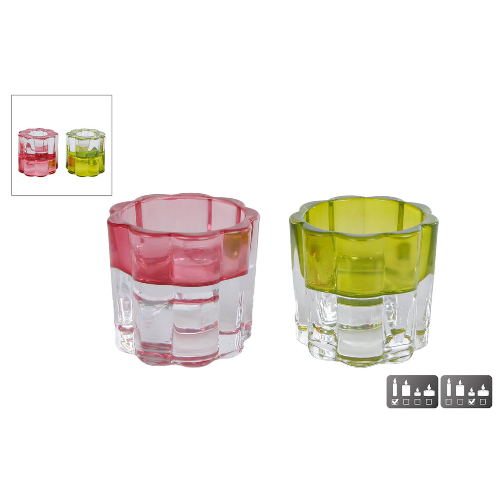 Teelicht-/Kerzenhalter "Blume" grün/rosa 2 sortierte Gläser 5,5x5,5x5cm