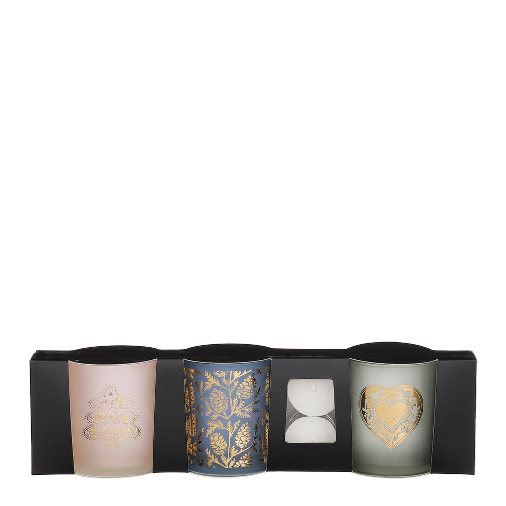 Teelichthalter off weiß blau grün 3er Satz inkl. Teelicht - h8xd7cm