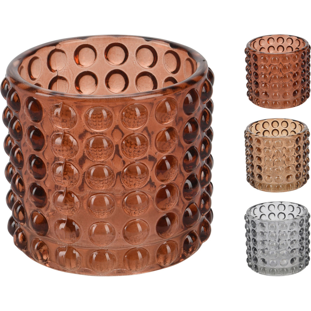 KERZENHALTER GERIPPTE PUNKTE D7 H6,8CM 3 FARBEN SORTIERT