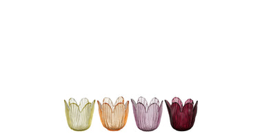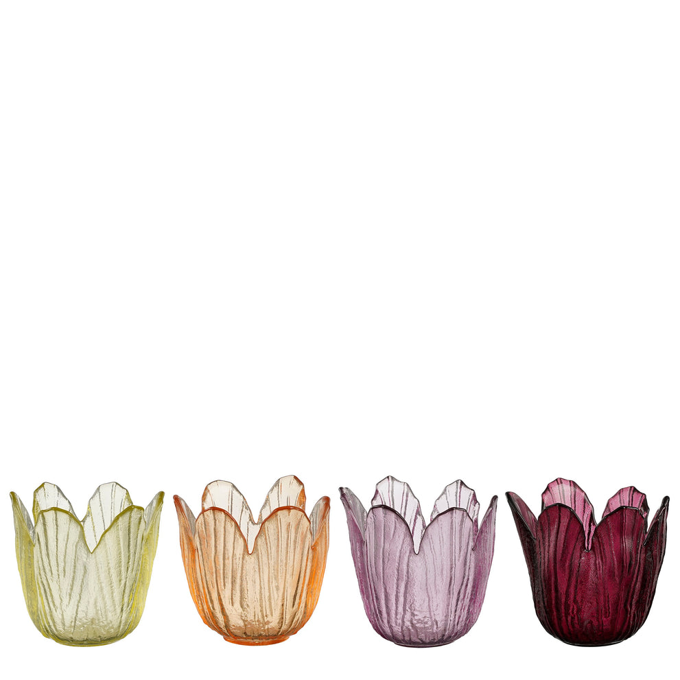 Teelichthalter Blume grün orange lila rot sortiert - h7.5xd8cm