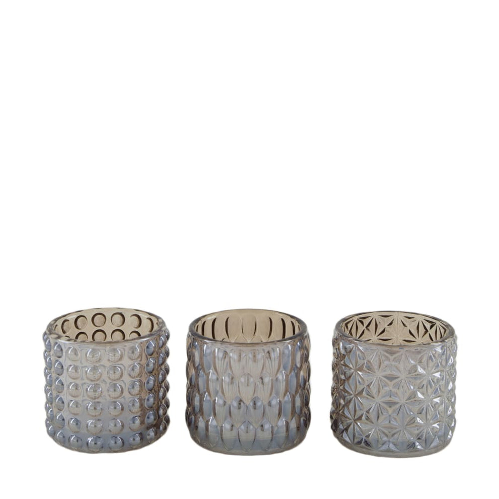 Teelichthalter Glas 7x7x6,8cm 3 Dunkelbraun Mix