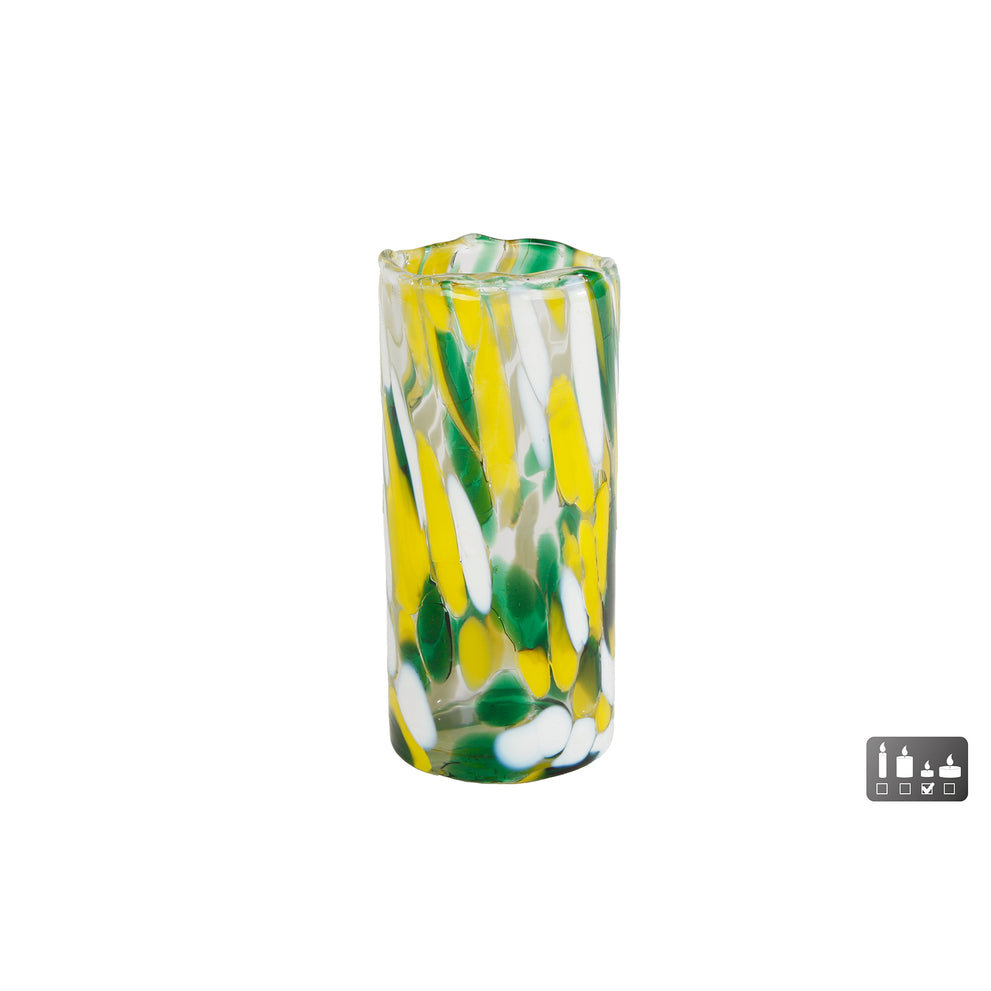 Teelichthalter "Dots" L gelb/grün/weiß Glas 5.5x5.5x12cm