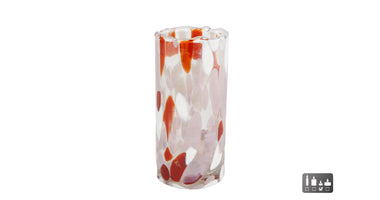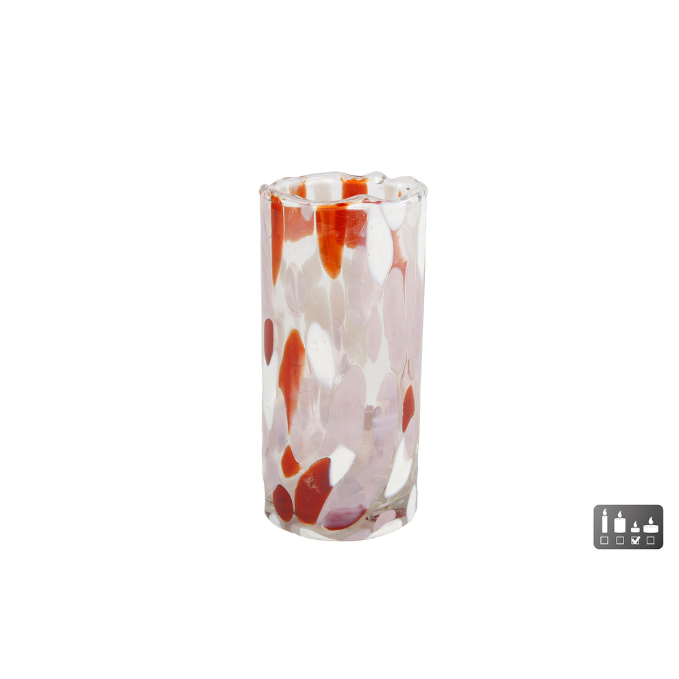 Teelichthalter "Dots" L rosa/fuchsia/weiss Glas 5.5x5.5x12cm
