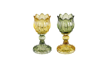 Teelichthalter Tulpe gelb grün 2er Set - H15 x D8 cm