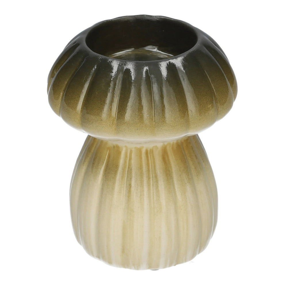 Teelichthalter Pilz Portcini mit Linien Grün D9,5 H11,2 cm Keramik