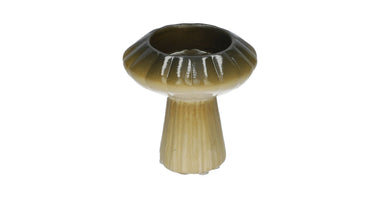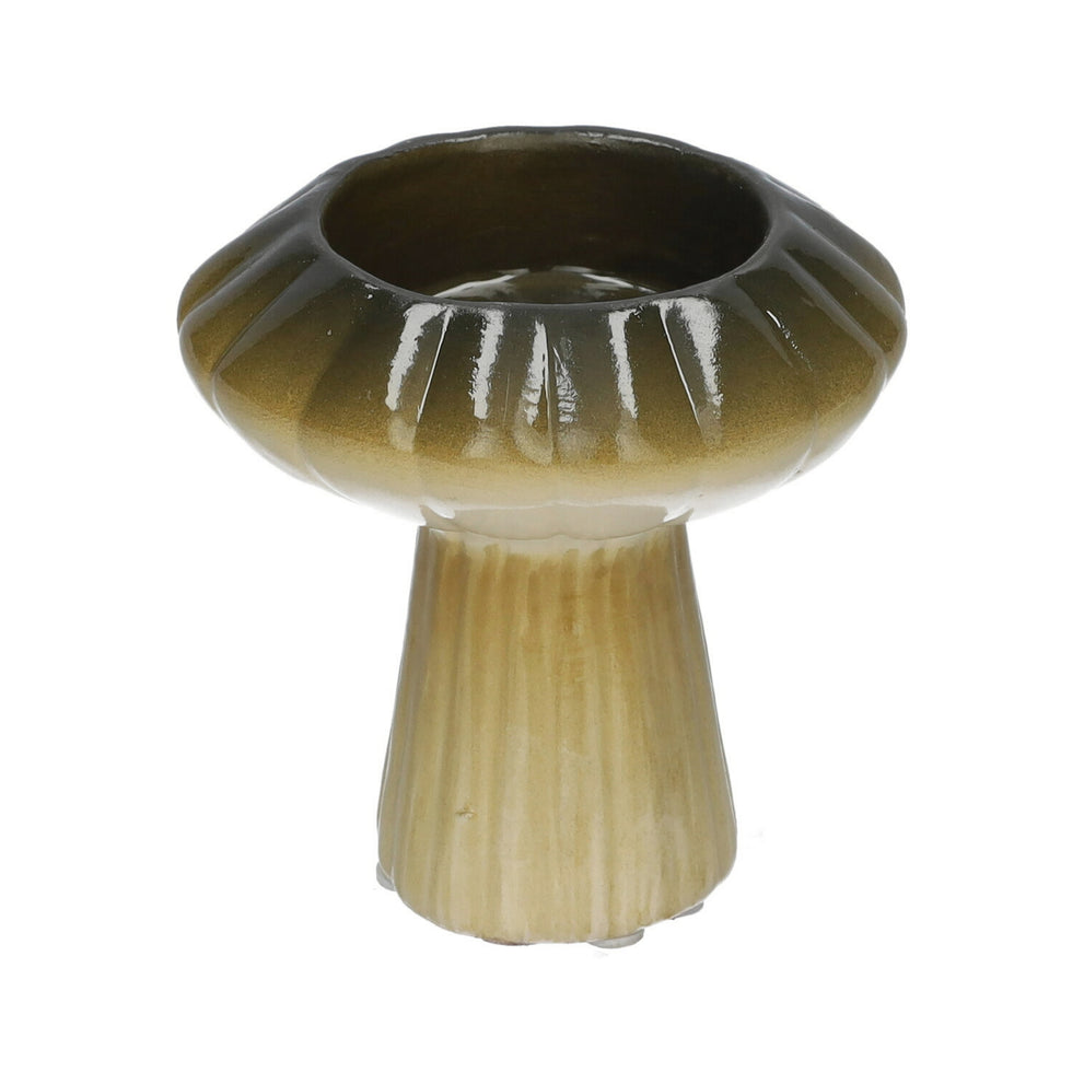 Teelichthalter Pilz Russle mit Linien Grün D9 H9,5 cm Keramik