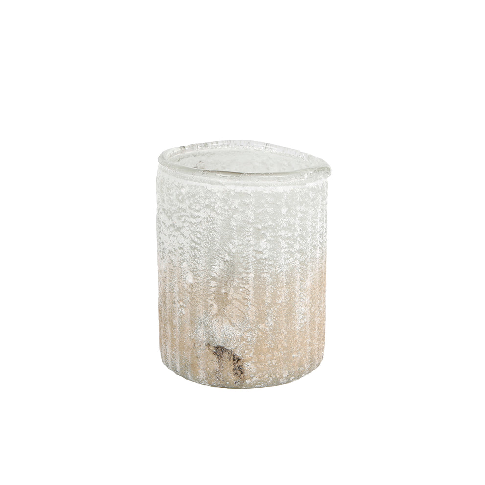 Teelicht "Bianca" creme/braun Glas 7x7x8,5cm