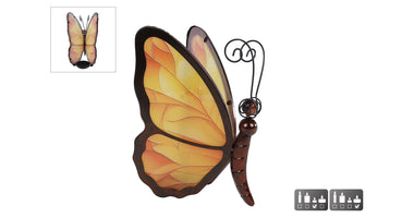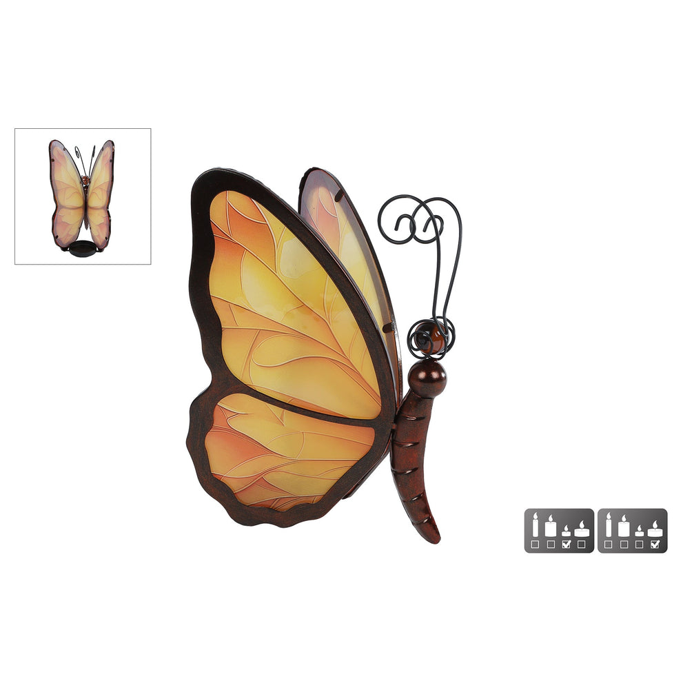 Theelichth "Butterfly" amber/beige glas/metaal 17,5x14x25cm