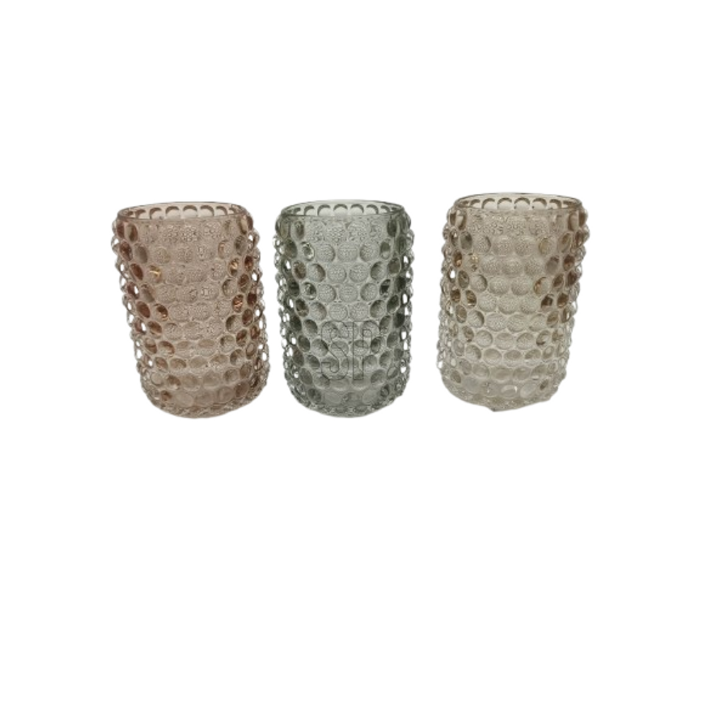 THEELICHTHOUDER D8 H12CM STIPPEN 3 ASSORTIE