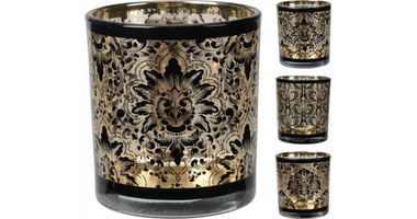 Teelichthalter Glas D7 H8cm Schwarz/Gold 3er Set