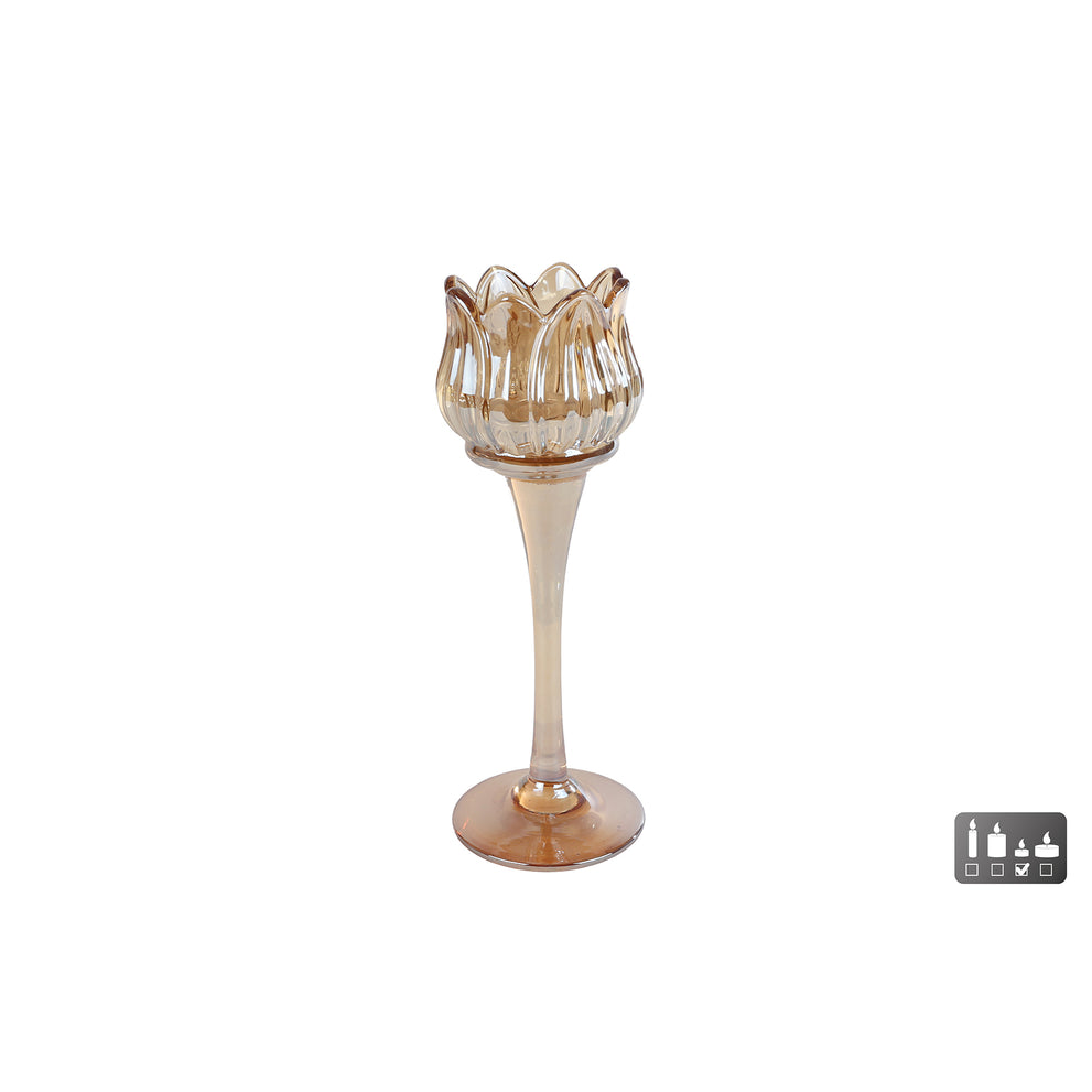 Teelichthalter "Tulip" aus bernsteinfarbenem Glas, 7x7x22cm