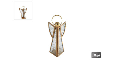 Theellichth "Engel" S helder/messing glas/metaal 8x8x18cm