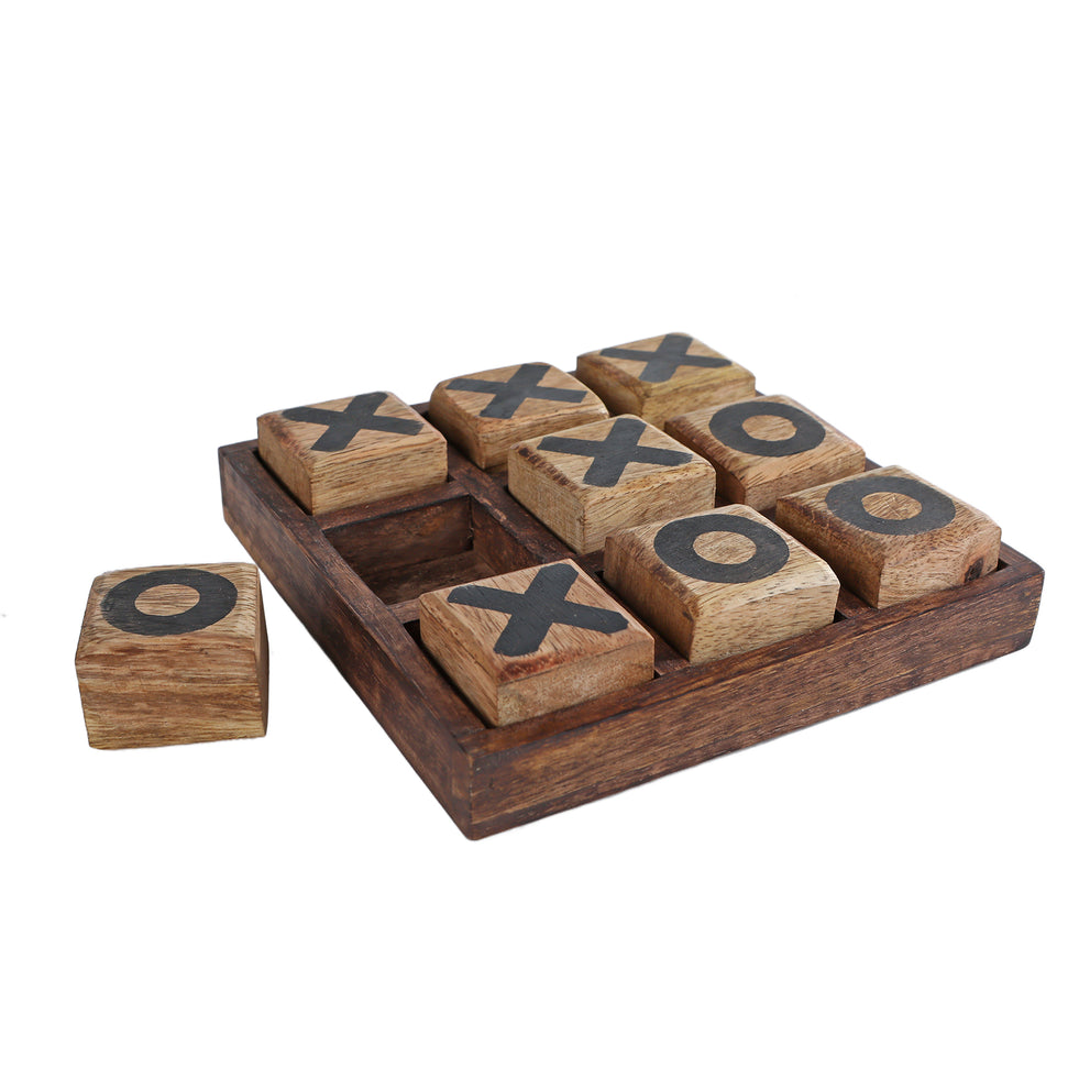 Tic Tac Toe "O/X" naturel/zwart mango 13x13x3,5cm