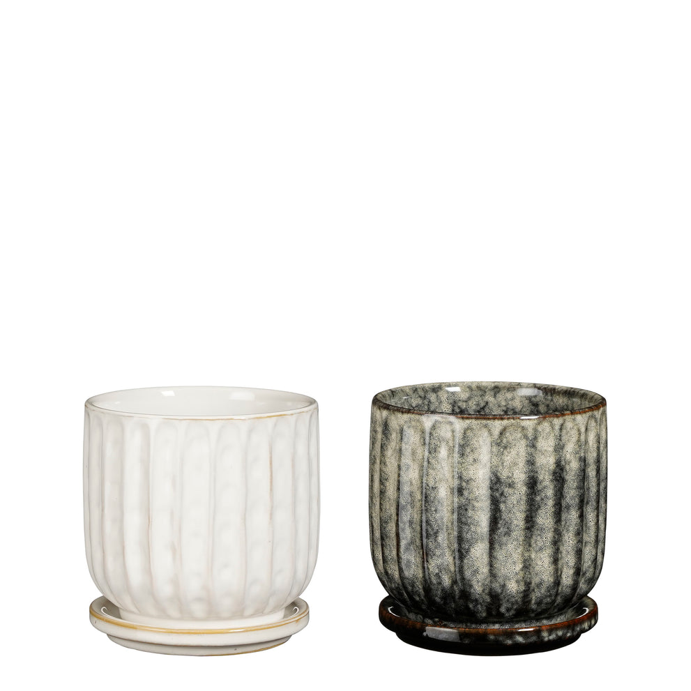 Tim Topf rund grau weiß 2 assortiert - h12,5xd12,5cm