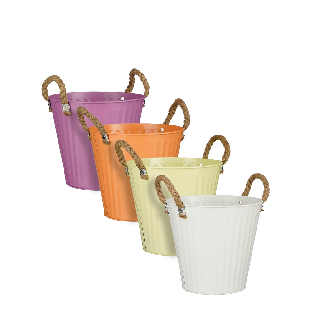 Topf rund rosa aus weiß l.gelb orange 4 sortiert - h15xd16cm - Metall