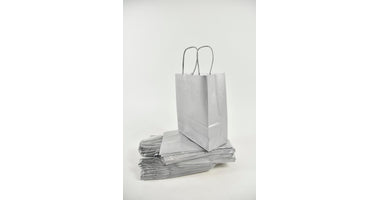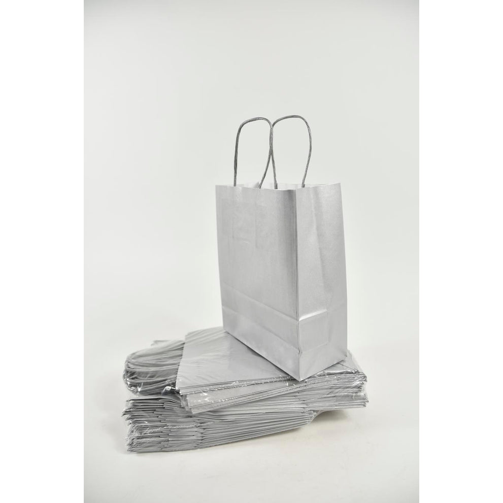 Tragetasche Silber Kraft 18 + 8x22 cm zu 50 Stück gedreht Handv.