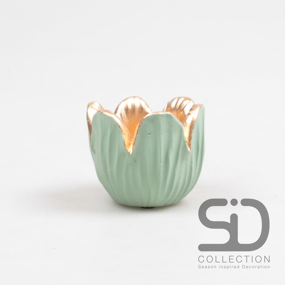 Tulpen-Wachslichthalter aus Zement, 8,5 x 6,5 cm, grün