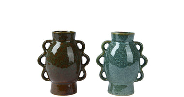 Vaas porselein 2 assortie 12x8x13,5cm turquoise/groen