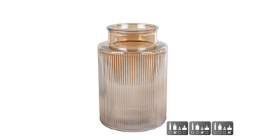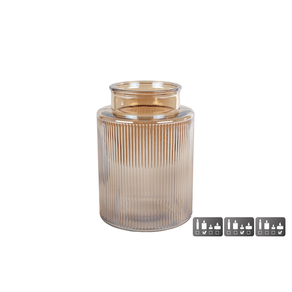 Vaas/windlicht "Niamh" L luster amber glas 15x15x21cm
