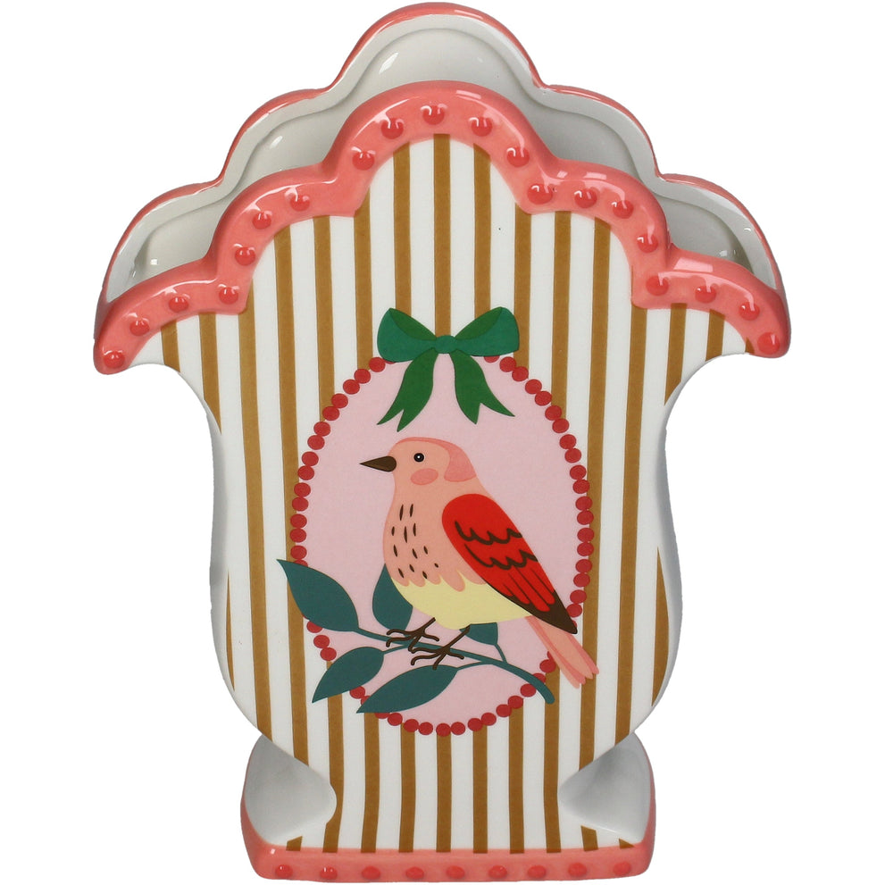 Vase Bird Stoneware Multi 18.8x7.2x25.1cm