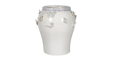 VASE CERAMIC D36X43H WHITE BUTTERFLY