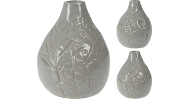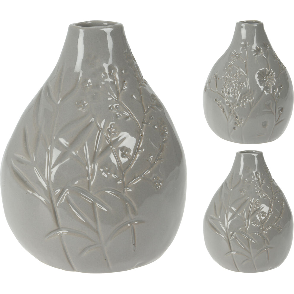 VASE KERAMIK MIT DEKO 14CM GRAU 2 STÜCK SORTIERT