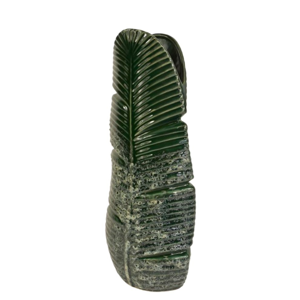 VASE BLATTKERAMIK 16X10X38,5H DUNKELGRÜN