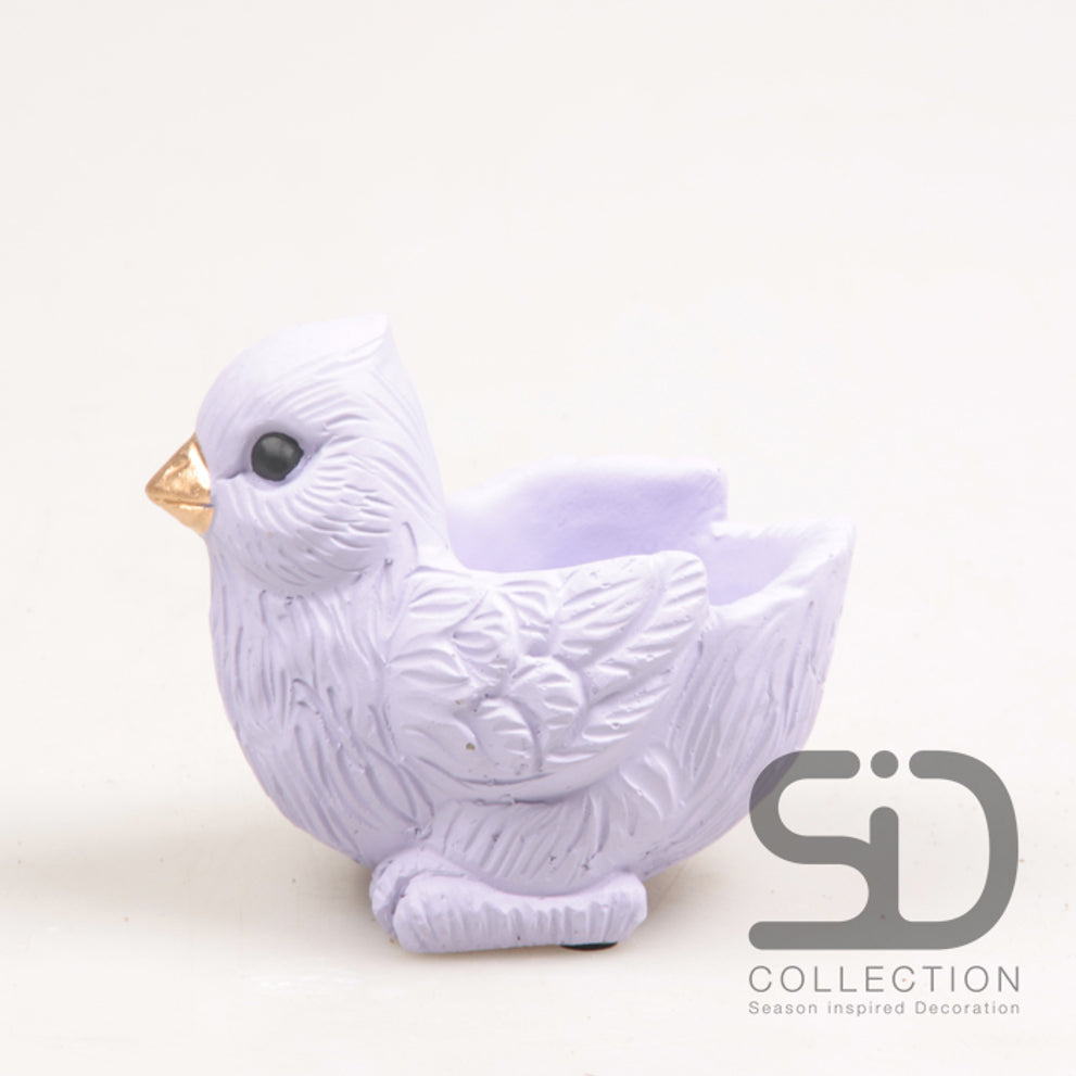 VOGEL MIT PFLANZGEFÄSS ZEMENT 12X8X7,5 CM FLIEDER
