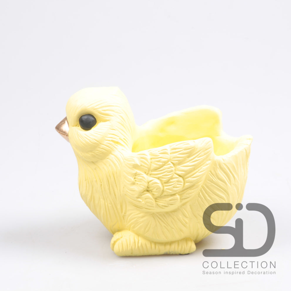 VOGEL MIT PFLANZGEFÄSS ZEMENT 19,5X13,5X16,5 CM GELB