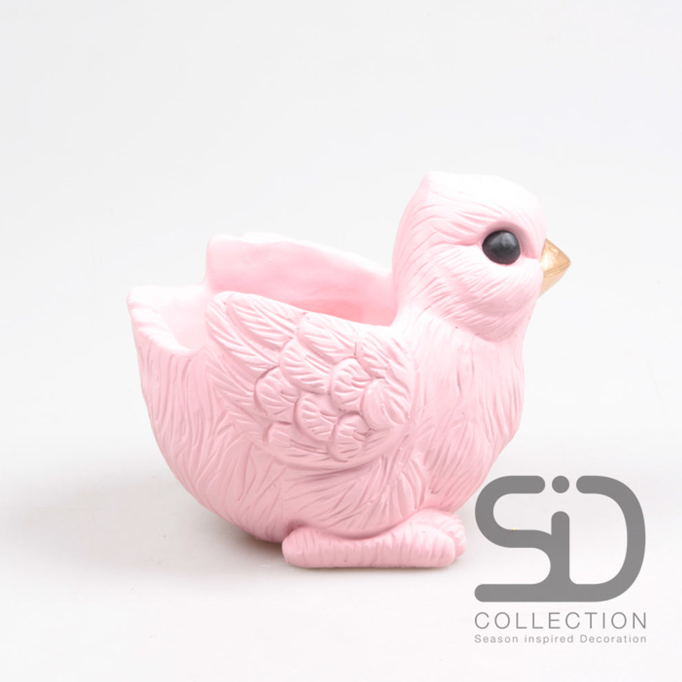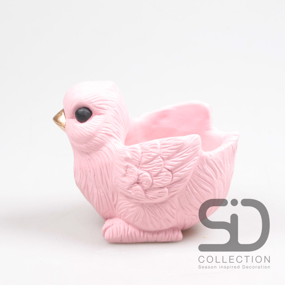 VOGEL MIT PFLANZGEFÄSS ZEMENT 19,5X13,5X16,5 CM ROSA