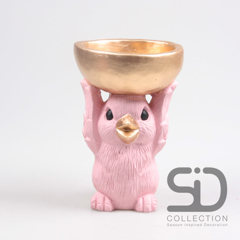 VOGEL MIT SCHALE ZEMENT 22X14.5X22 CM ROSA