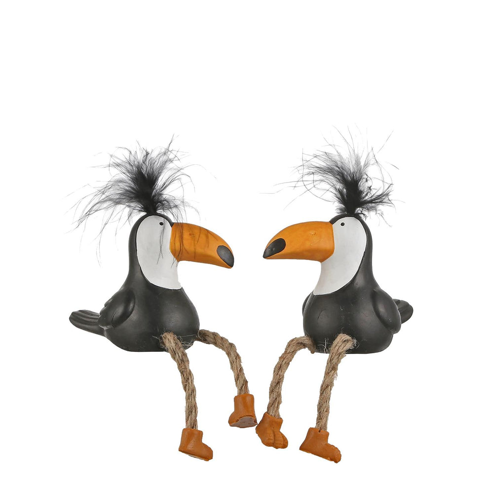 Vogel roze zwart 2 assorti - l4,5xb8,5xh8cm