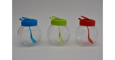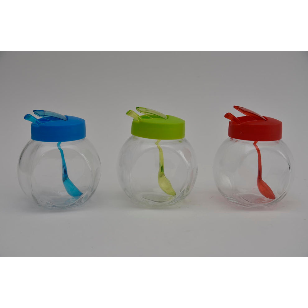 Glasbehälter mit Löffel 3ass Farbe