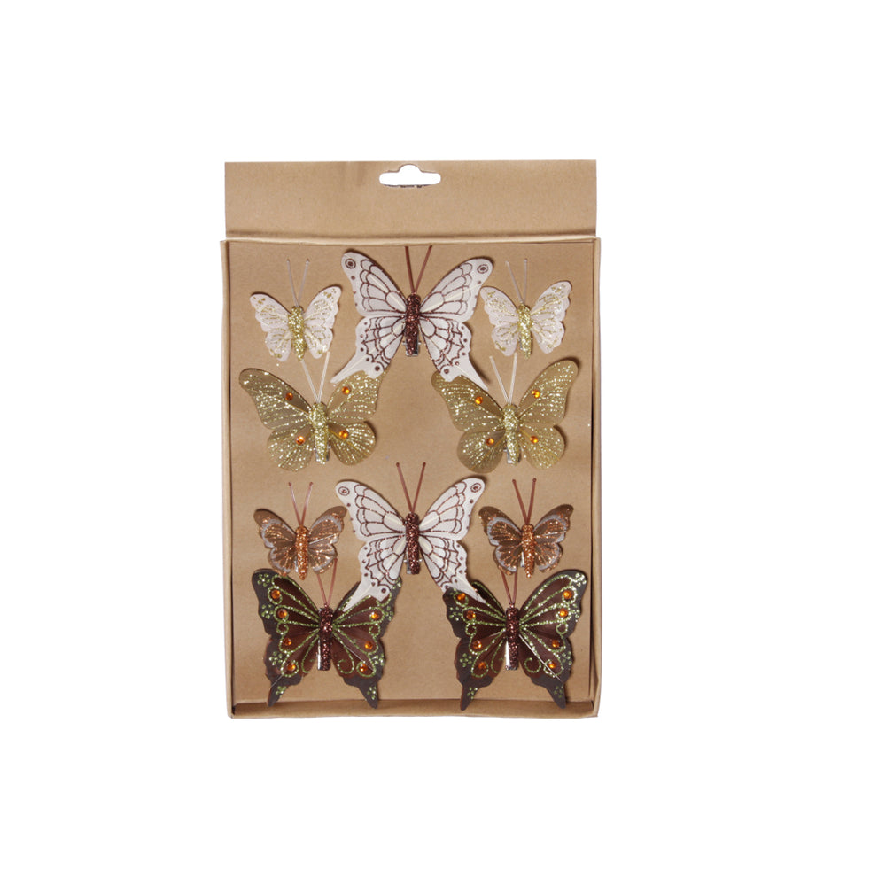 w/b. 10 Schmetterlinge/Clip 4 sortiert braun/gold sortiert