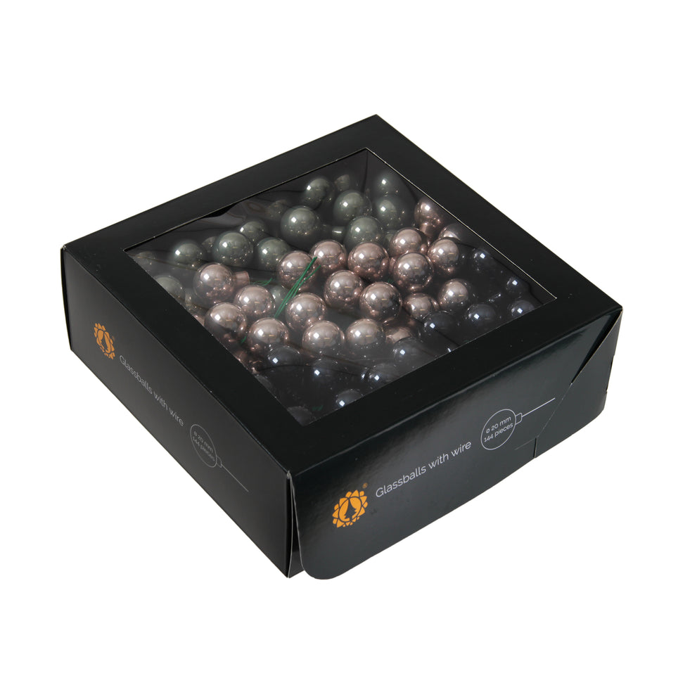 w/b. 144 Glaskugeln/Draht Wacholder 20 mm