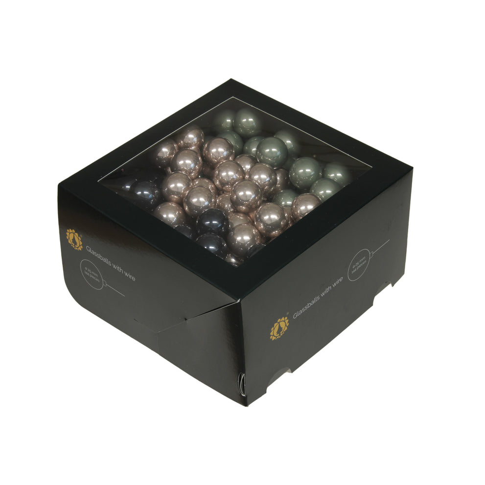 w/b. 144 Glaskugeln/Draht Wacholder 25 mm